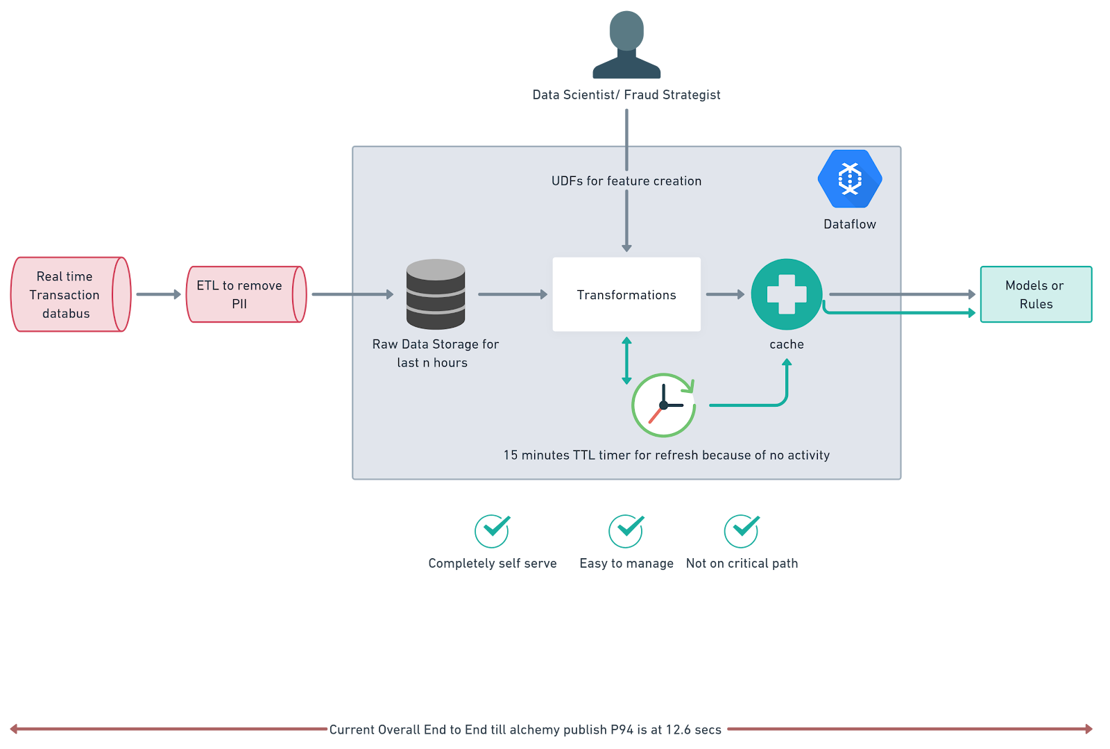 - Straightforward Backfilling: Computed data is pushed into BQ, and the service can be lifted and replayed on any BQ table, simplifying data backfilling (though speed is untested).